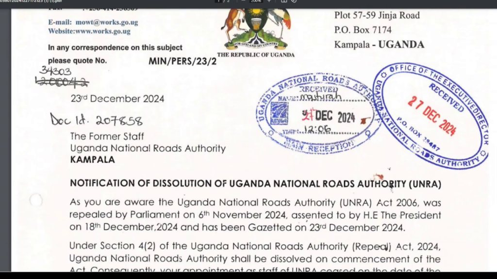 Home»International News»UNRA HAS BEEN DISSOLVED ONCE AND FOR ALL.